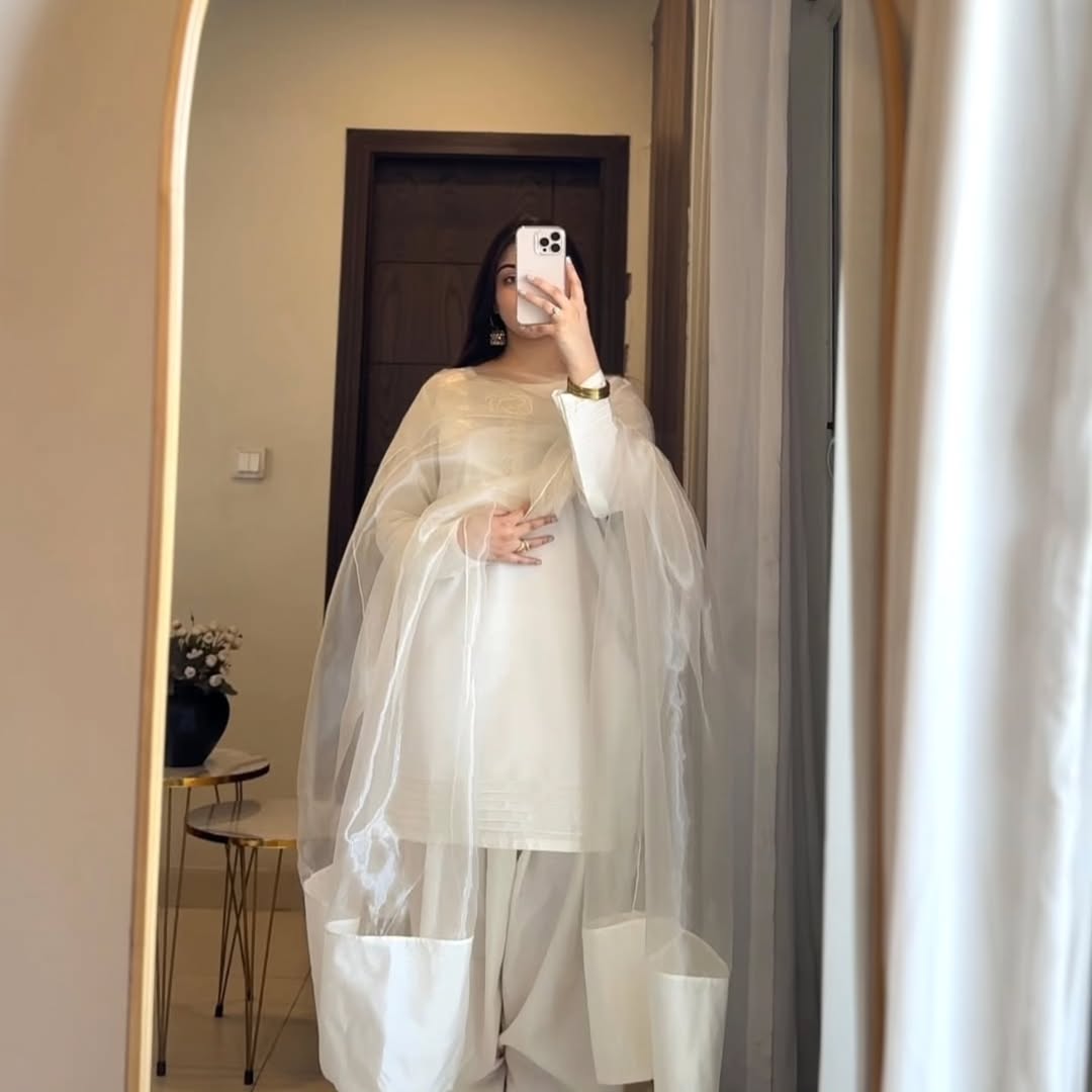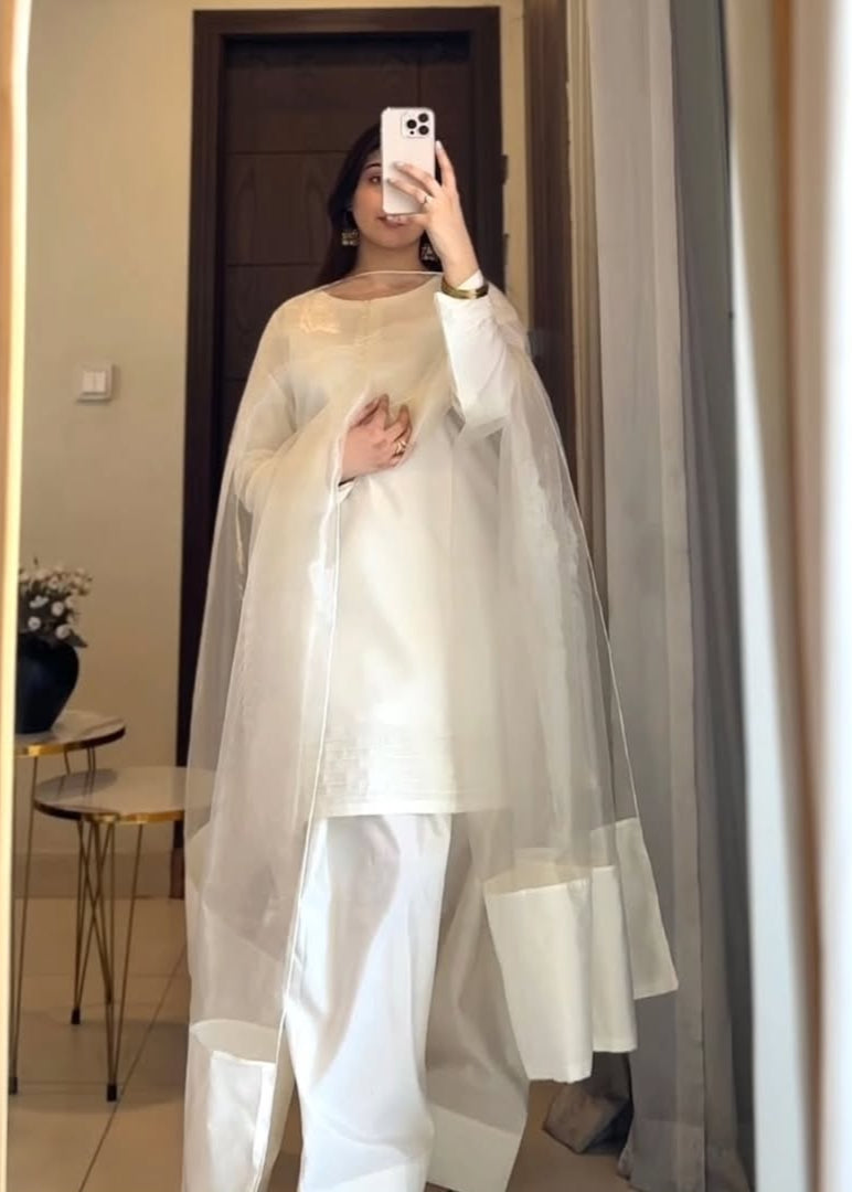 A soft organza dupatta completes the elegant look.